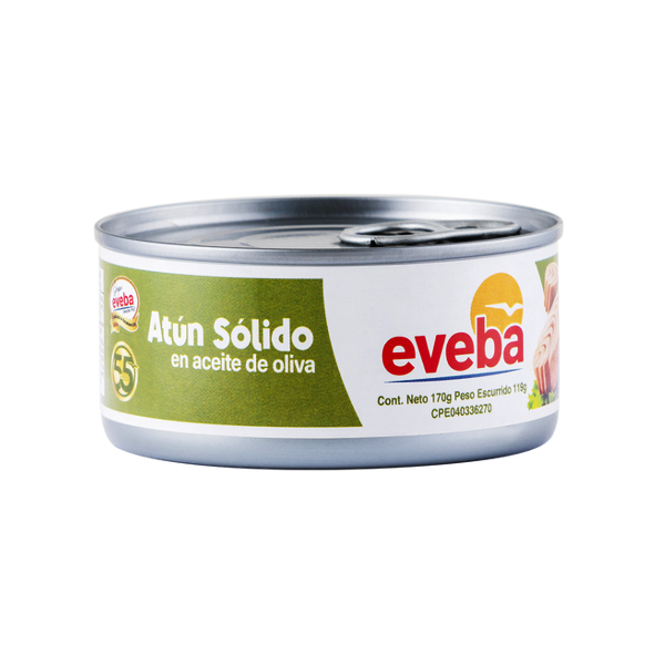 El atún sólido en aceite de oliva Eveba, en una presentación de 170 gramos, es una opción saludable y deliciosa para incorporar en ensaladas, sándwiches o platos principales. Rico en proteínas y ácidos grasos omega-3, este atún es ideal para quienes buscan una alimentación balanceada y llena de sabor, con el toque adicional del aceite de oliva que realza su frescura.