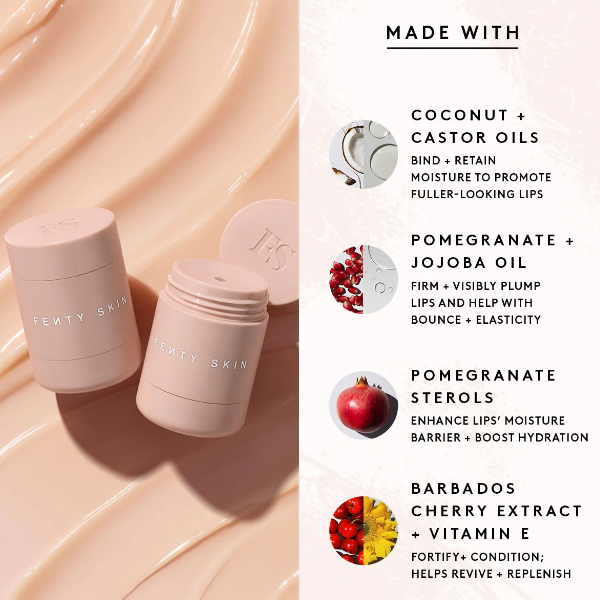 - Complejo de Aceite de Granada y Jojoba: Firma y da volumen a los labios visiblemente, y mejora la apariencia de rebote y elasticidad.