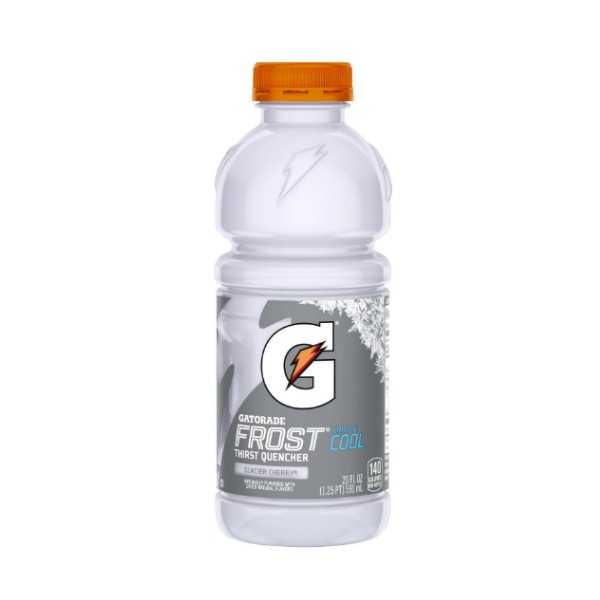 Gatorade Frost Glacier Cherry es una bebida energética que proporciona hidratación y reposición de electrolitos. Viene en una botella de 591 ml. Esta bebida está diseñada para ayudar a reponer los líquidos y minerales perdidos durante la actividad física intensa.