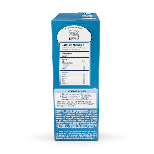 - Alérgenos: Contiene gluten, leche y derivados de soya.