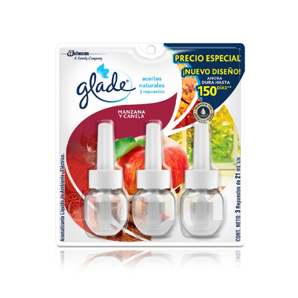 Glade Aceite Natatural Manzana-Canela X 3 Recipientes 21Ml