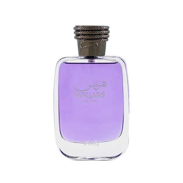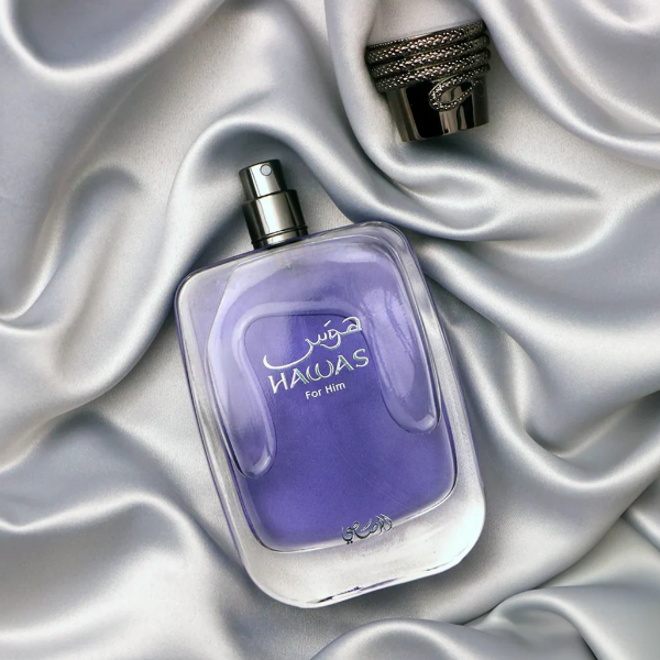 Hawas for Him combina canela, bergamota, flor de naranja, ámbar gris y sándalo para crear una fragancia acuática diseñada para encarnar la fuerza y el vigor masculinos.