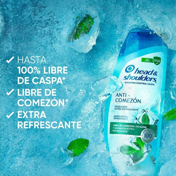 ¡LIBÉRATE DE LA CASPA Y DE LA COMEZÓN*!: Olvídate de la incómoda comezón y la caspa* en tu cabello con el Shampoo para caspa Head & Shoulders Anti-Comezón. Su fórmula con menta brinda una sensación extra refrescante y alivio inmediato a la sensación de comezón* en tu cuero cabelludo, dejándolo hasta 100% libre de caspa*