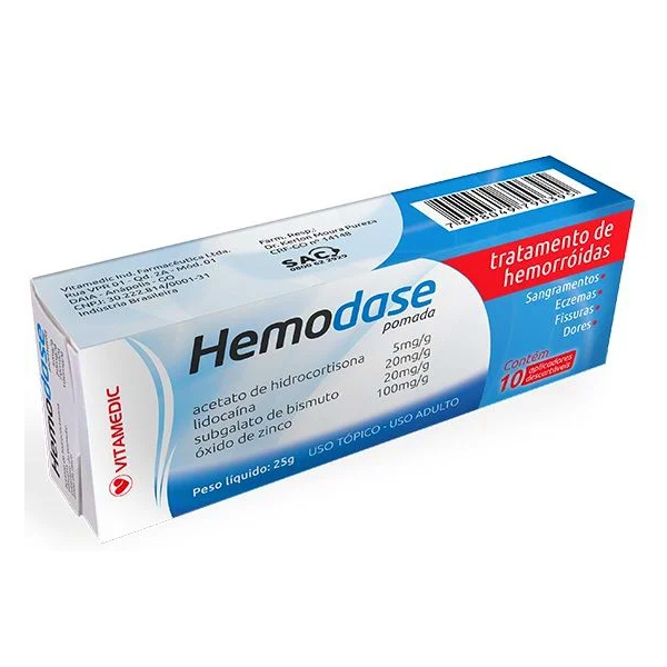 Hemodase Pomada Hidrocortisona+Lidocaína+Bismuto+Zinco X 25Gr. Vitamedic