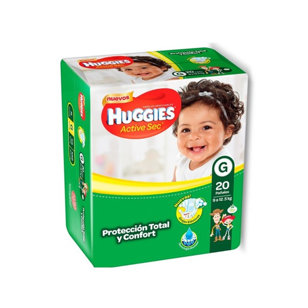 Los nuevos Huggies Active Sec tienen la exclusiva tecnología Xtra-Flex que ofrecen protección total y flexibilidad para acompañar cada paso del desarrollo de tu bebé. Util para bebés de talla G