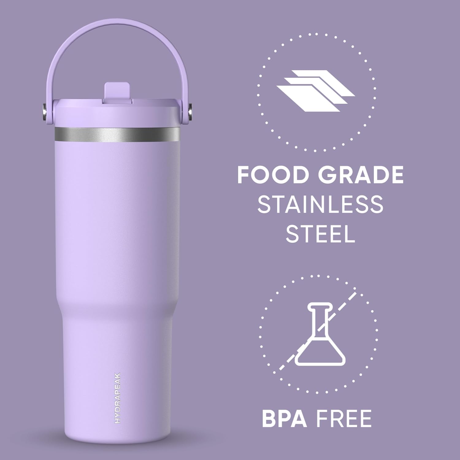 El vaso Nomad con tapa y pajita cuenta con la tecnología de aislamiento al vacío de doble pared y triple capa de Hydrapeak, que mantiene tus bebidas a la temperatura perfecta durante todo el día. Frías hasta 24 horas y calientes hasta 12 horas.