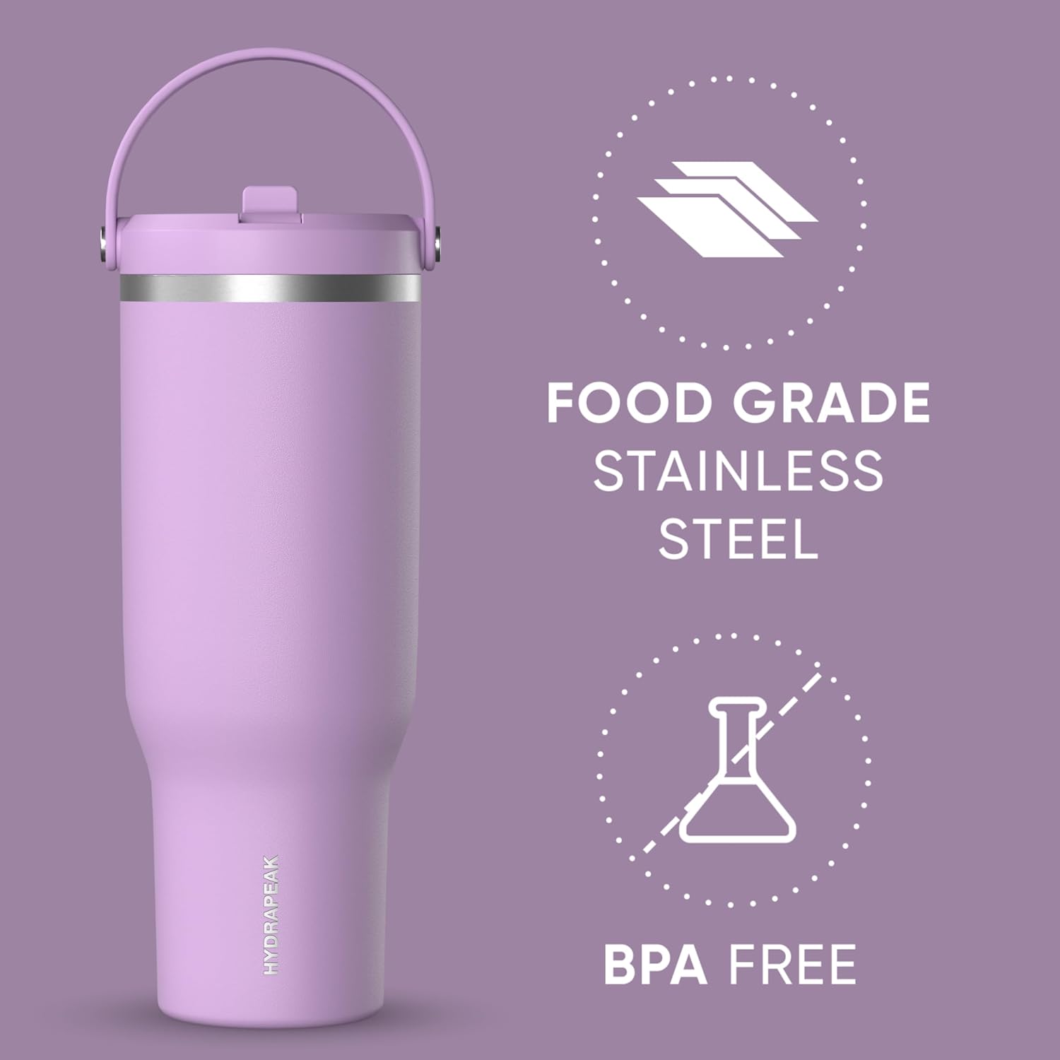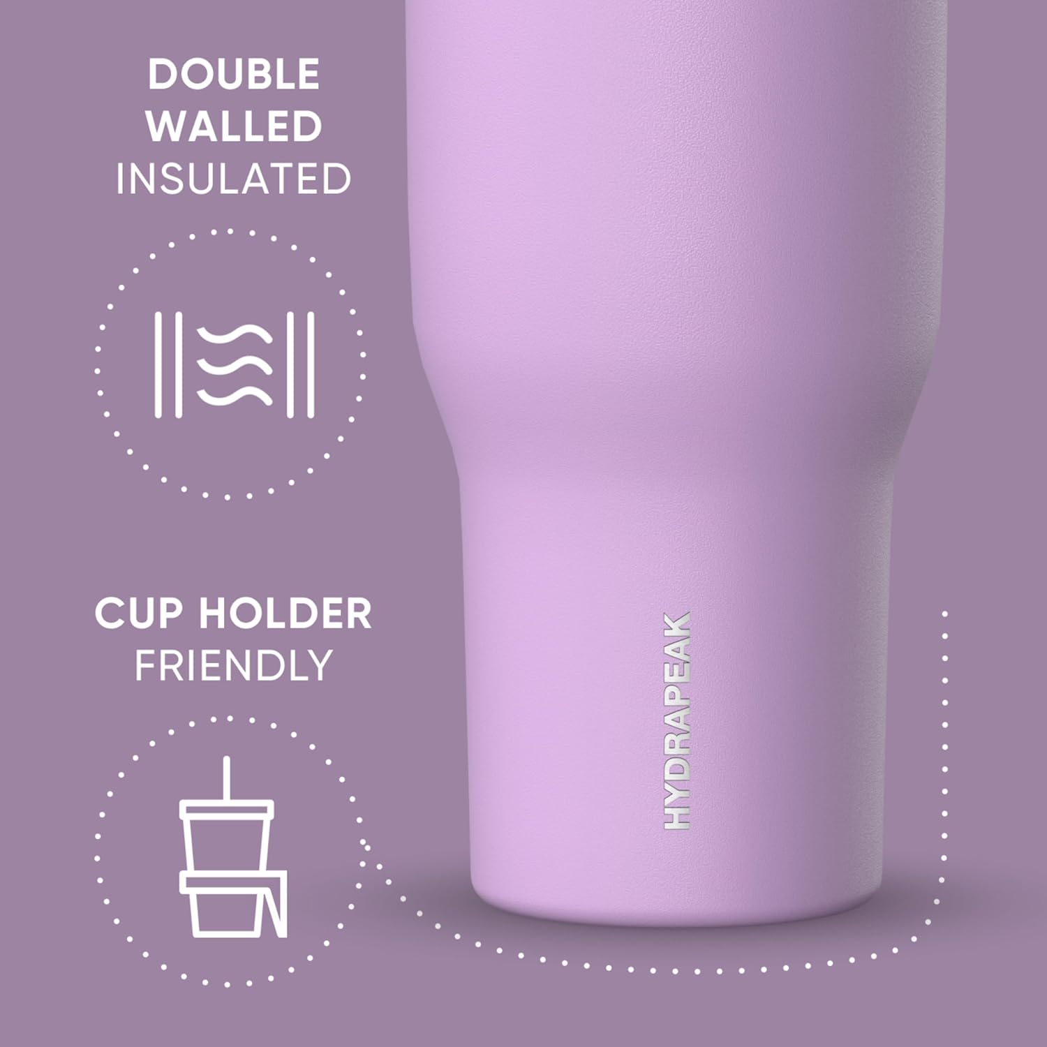 El vaso Nomad con tapa y pajita cuenta con la tecnología de aislamiento al vacío de doble pared y triple capa de Hydrapeak, que mantiene tus bebidas a la temperatura perfecta durante todo el día. Frías hasta 24 horas y calientes hasta 12 horas.