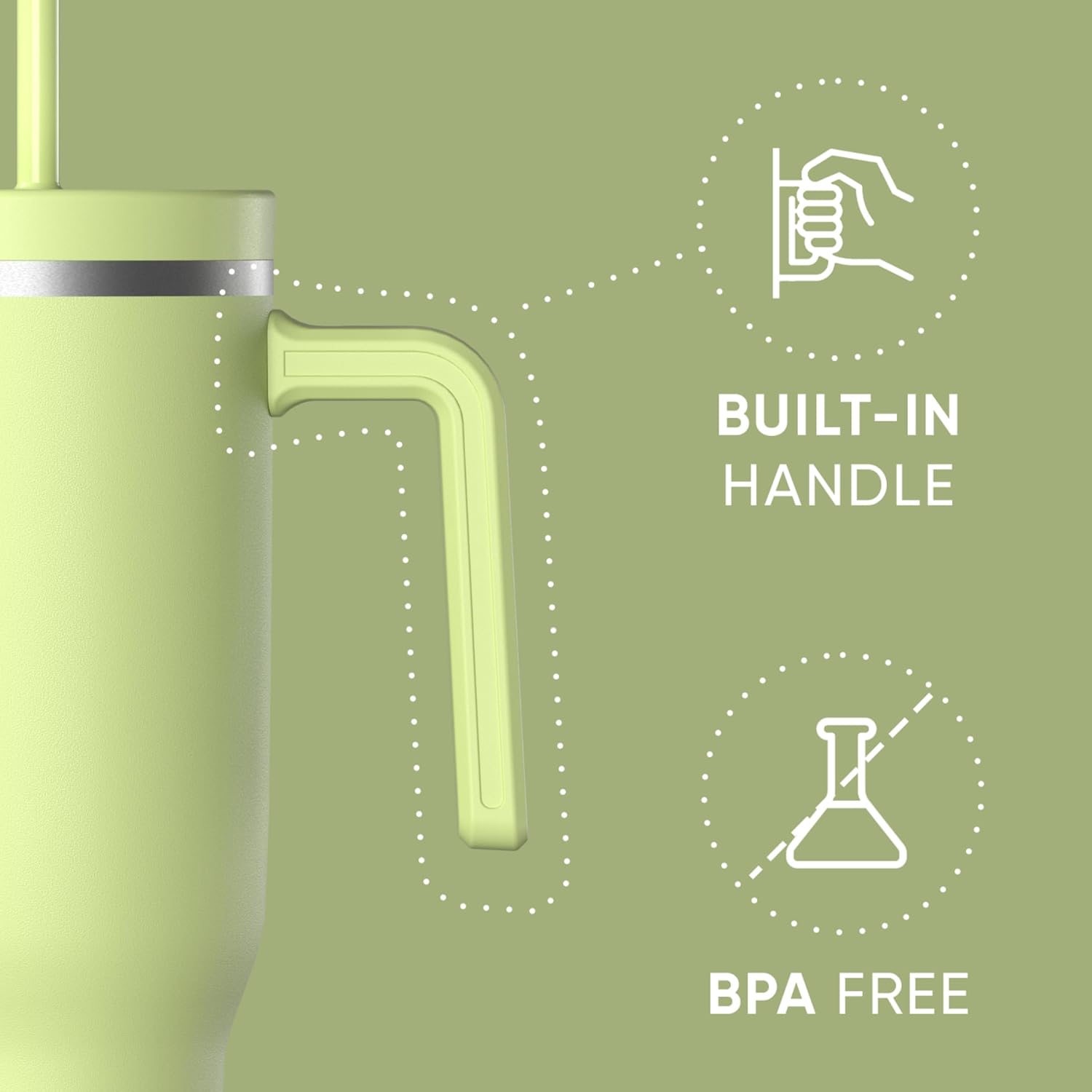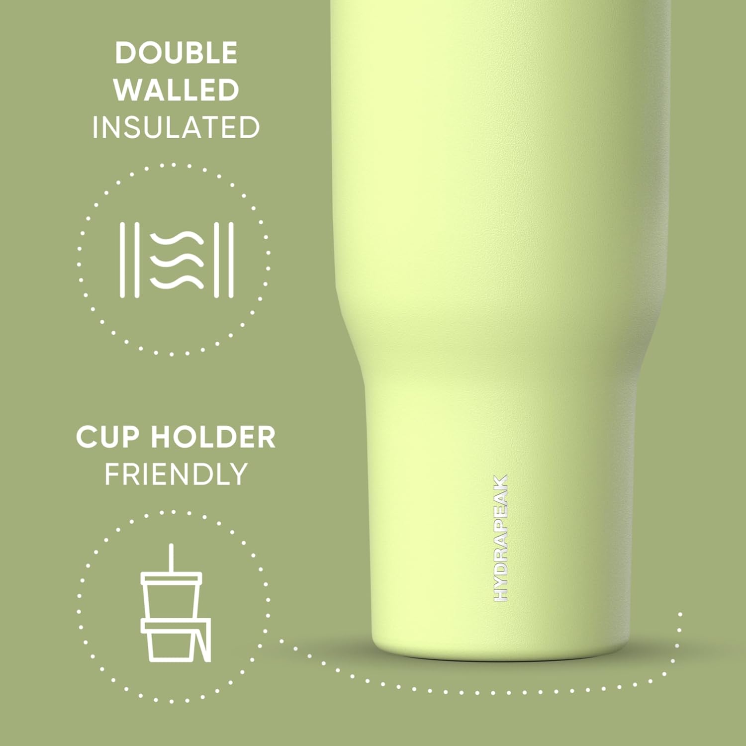 Este vaso térmico Hydrapeak con tapa con pajita y asa está fabricado con acero inoxidable 18/8 de alta calidad apto para uso alimentario y libre de BPA, lo que lo hace más resistente, duradero y garantiza que el vaso permanezca libre de olores. Este vaso de viaje fue diseñado para llevarlo a todas partes.