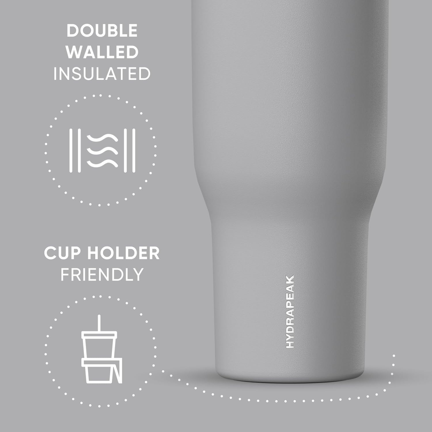 Este vaso térmico Hydrapeak con tapa con pajita y asa está fabricado con acero inoxidable 18/8 de alta calidad apto para uso alimentario y libre de BPA, lo que lo hace más resistente, duradero y garantiza que el vaso permanezca libre de olores. Este vaso de viaje fue diseñado para llevarlo a todas partes.