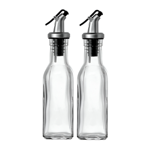 Práctico kit que incluye una aceitera y una vinagrera. Fabricados en vidrio resistente con tapones herméticos, ideales para conservar y servir aceite y vinagre con estilo y facilidad.