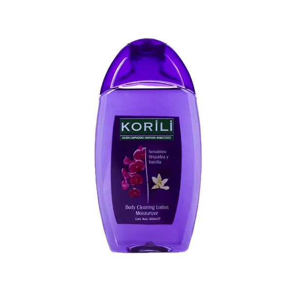 Korili Loción Limpiadora Orquídea y Vainilla 300Ml hidrata profundamente la piel mientras la limpia, dejando un aroma suave y relajante gracias a sus ingredientes de orquídea y vainilla.