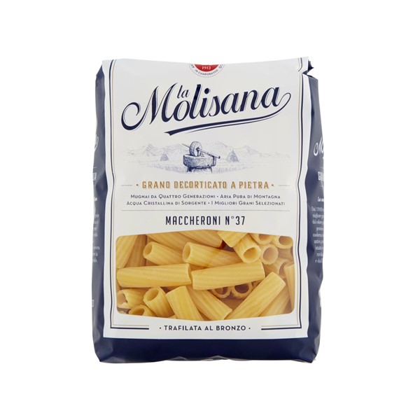 Los maccheroni La Molisana se elaboran artesanalmente con sémola de trigo duro y agua del manantial del Parque Natural de Matese y se les da forma mediante un molde de bronce para mantener intactas sus cualidades y lograr una pasta genuina y digerible.