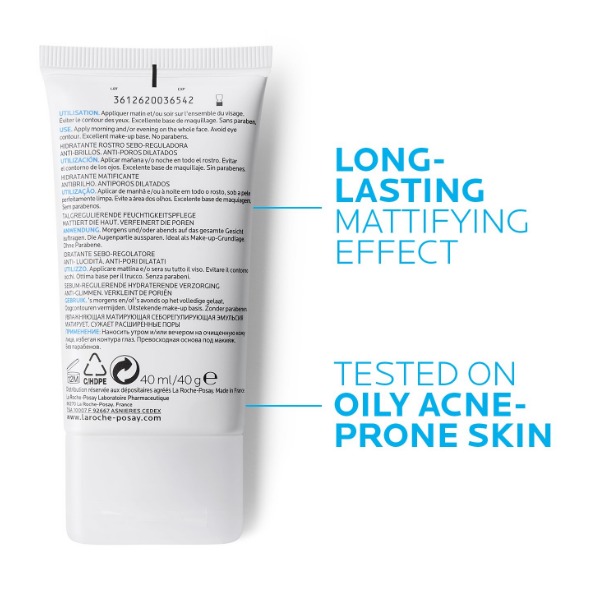 Hidratante facial matificante de La Roche Posay diseñado específicamente para pieles grasas propensas a imperfecciones.
