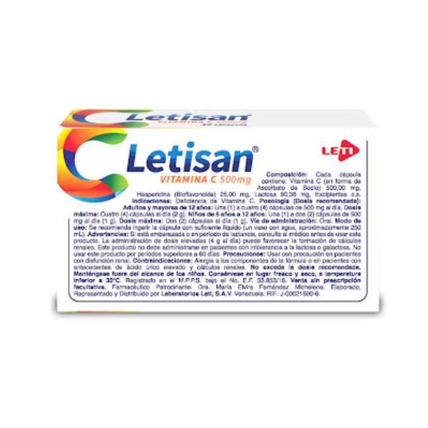 Letisan Vitamina C 500mg x 30 Cápsulas – Leti