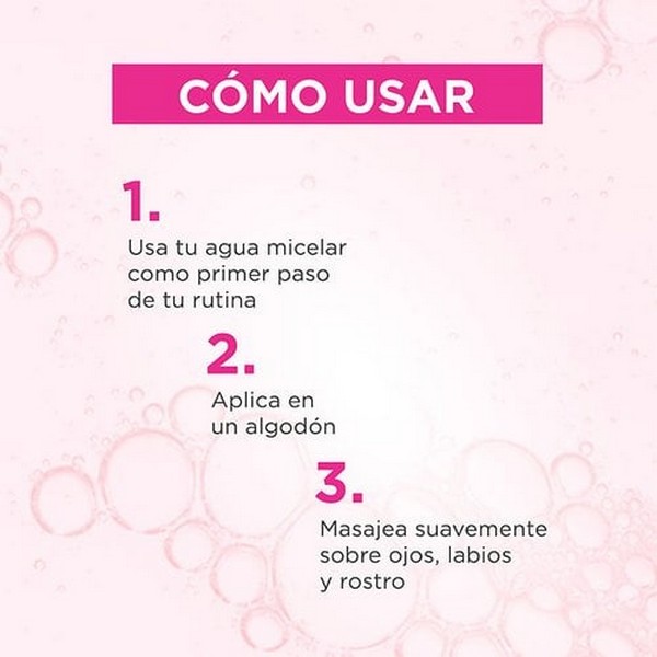 Agua Micelar 5 en 1: Limpia, desmaquilla, previene irritaciones, hidrata y suaviza. Sin dejar sensación grasosa.