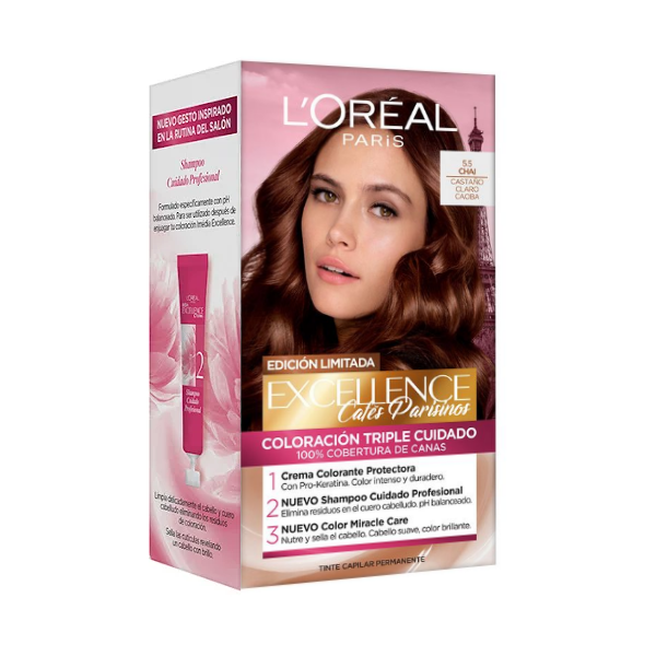 Loreal Excellence Creme Kit Tinte 5.5 Chai Castaño Claro Caoba