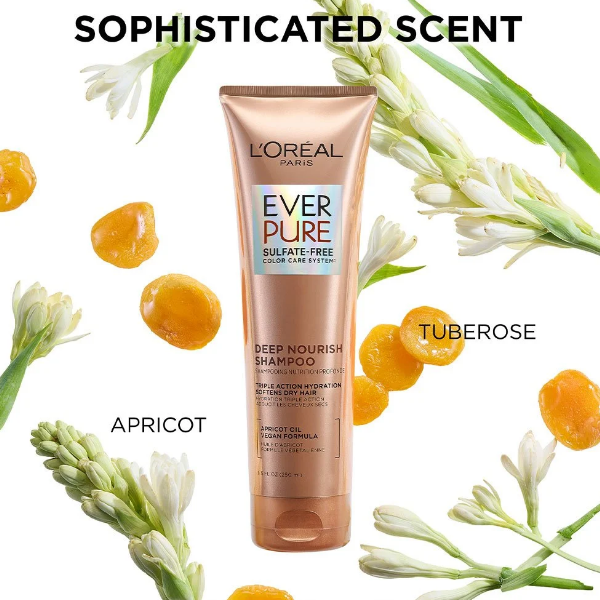 El shampoo EverCreme Deep Nourish con aceite de chabacano aporta al cabello seco y quebradizo una nutrición vital y una hidratación profunda para conseguir una textura sedosa y un brillo saludable sin efecto pesado. El cabello se ve más sano después del primer uso. Nuestro shampoo para cabello seco es especialmente suave con el color. No contiene sulfatos, sales ni tensioactivos agresivos que puedan agredir, apagar y dañar el cabello. Experimenta una exuberante y lujosa espuma puramente sensorial y una fresca fragancia aromática. Ever, nuestro cuidado capilar original 100% sin sulfatos. Puro respeto por tu cabello.