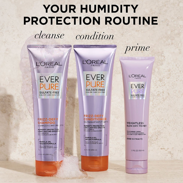 Después de usar EverPure Frizz-Defy Shampoo, aplícalo sobre el cabello mojado y masajee suavemente. Deja actuar 1-2 minutos. Enjuaga. A continuación, aplicar EverSleek Frizz Finish.