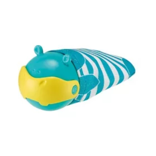 Sacapuntas con diseño de hipopótamo y depósito incorporado, ideal para sacar punta a lápices de forma divertida.