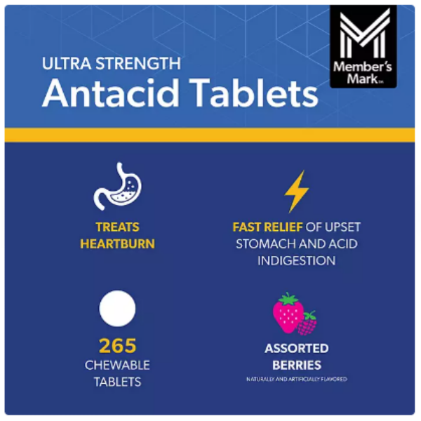 Antiácido de alta potencia que alivia el malestar estomacal y la acidez. Fórmula en tabletas masticables con sabor agradable. Presentación económica de 265 tabletas.