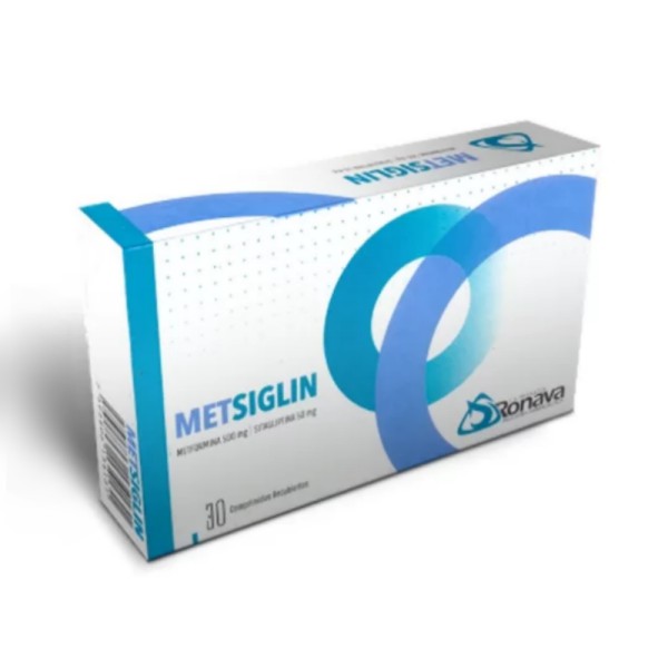Metsiglin es una combinación de metformina y sitagliptina, utilizada en el tratamiento de la diabetes mellitus tipo 2. La metformina reduce la producción hepática de glucosa y mejora la sensibilidad a la insulina, mientras que la sitagliptina aumenta la producción de insulina después de las comidas. Este formato contiene 30 comprimidos.