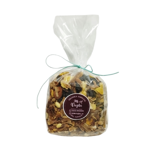 Esta granola especial viene en una presentación de 250 gramos. Es una opción saludable y versátil para diversas ocasiones.