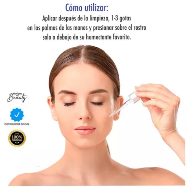 1. Después de la limpieza y el tónico, aplique una fina capa de suero sobre la piel limpia con las yemas de los dedos o con las palmas.