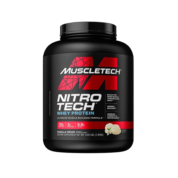 Muscletech Nitrotech es un suplemento de proteína en polvo elaborado con una combinación de proteína de suero de leche y aminoácidos, utilizado para aumentar la masa muscular magra, mejorar la recuperación muscular y apoyar el crecimiento muscular después del ejercicio físico y entrenamiento de fuerza.