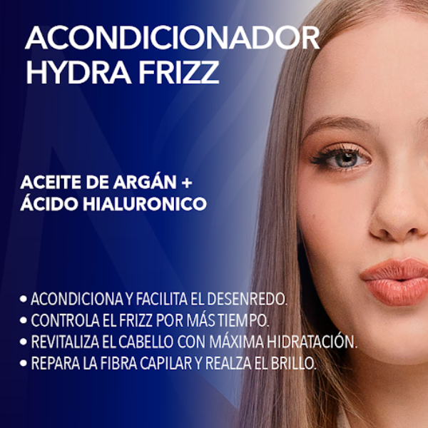 El acondicionador post – tratamiento Hydra Frizz, le confiere máxima hidratación a la hebra capilar gracias a su alta concentración de proteína hidrolizada de leche. Sus ingredientes de última tecnología eliminan el frizz dejando su cabello obediente, liso y con máxima suavidad al tacto. Descubra el misterio.
