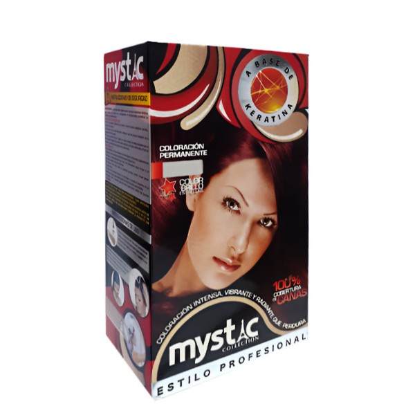 Mystic Kit Tinte en tono Sensual Castaño Medio 4.66 que proporciona una coloración intensa y duradera. Su fórmula enriquecida con ingredientes acondicionadores protege el cabello durante el proceso de coloración, dejándolo suave, brillante y saludable.