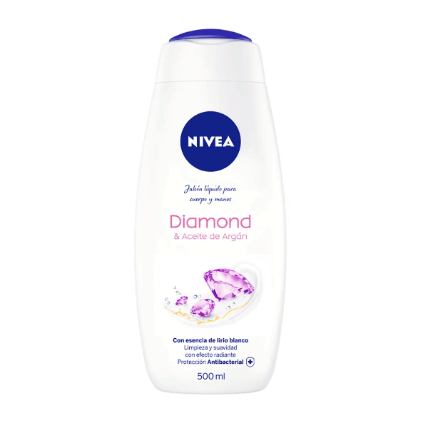 Jabón Líquido NIVEA Care Diamond Su fórmula con ingredientes humectantes y esencia de lirio blanco te ayuda a lucir una piel limpia y suave en cada baño. La fórmula con pH equilibrado para la piel con un delicado aroma a lirio deleita tus sentidos y el aceite de argán consiente tu piel diariamente