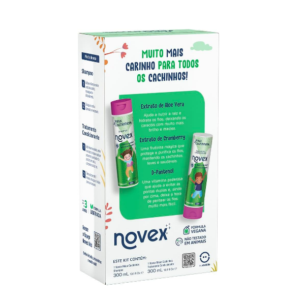 El kit Novex Vitay Meus Cachinhos incluye un shampoo y un acondicionador especialmente formulados para el cuidado del cabello rizado. Proporcionan hidratación y definición, dejando los rizos suaves y manejables.