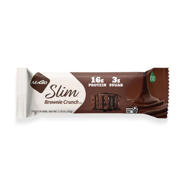 ¿Tienes antojo de esos brownies caseros masticables pero no quieres azúcar? NuGo Slim® Brownie Crunch combina el delicioso sabor de los brownies recién horneados con el delicioso crujido de las almendras trituradas. Esta barra recubierta de chocolate negro real tiene solo 3 g de azúcar, 16 g de proteína y no contiene gluten. ¡Ahora puedes satisfacer tus antojos de brownies cuando los tengas, sin necesidad de horno!