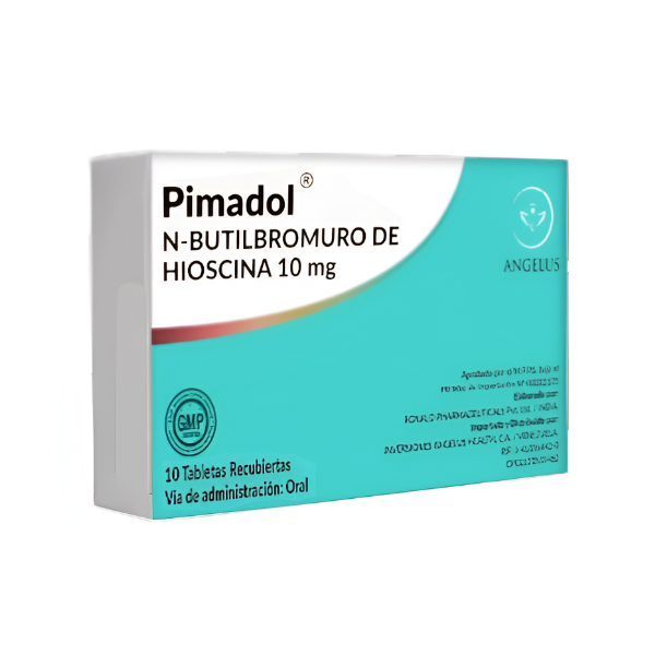 Pimadol de Angelus contiene N-Butilbromuro de Hioscina 10 mg en 10 tabletas. Usado para el tratamiento de espasmos gastrointestinales, alivio del dolor abdominal y cólicos.
