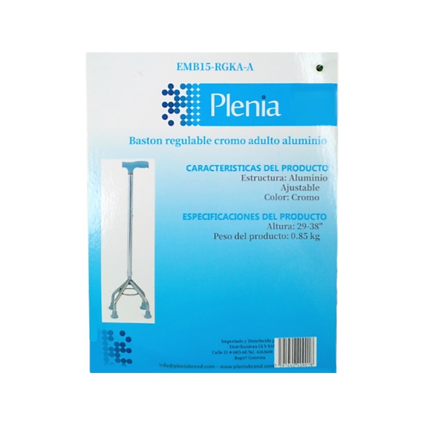 Plenia Baston 4 Puntos Aluminio Ajustable Cromo