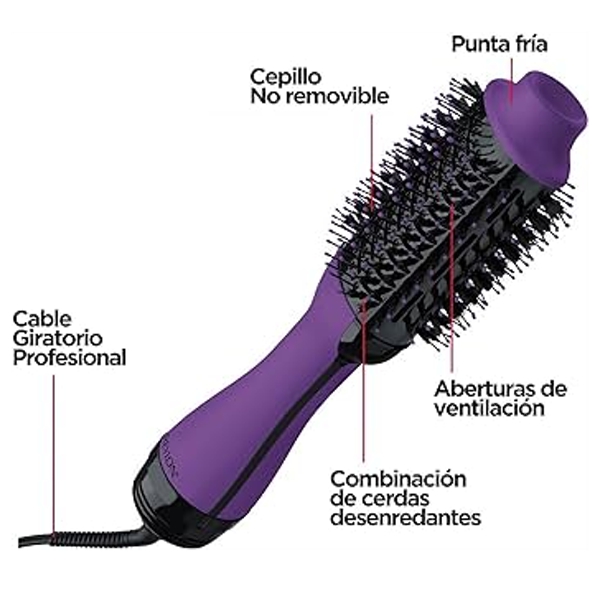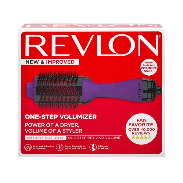 El Revlon Salon One Step Power of a Dryer Volume of a Styler en color lila es una herramienta de peinado 2 en 1 que combina el poder de un secador con la capacidad de dar volumen como un estilizador. Ideal para obtener peinados rápidos, con volumen y brillo en una sola pasada, facilitando el proceso de secado y modelado.