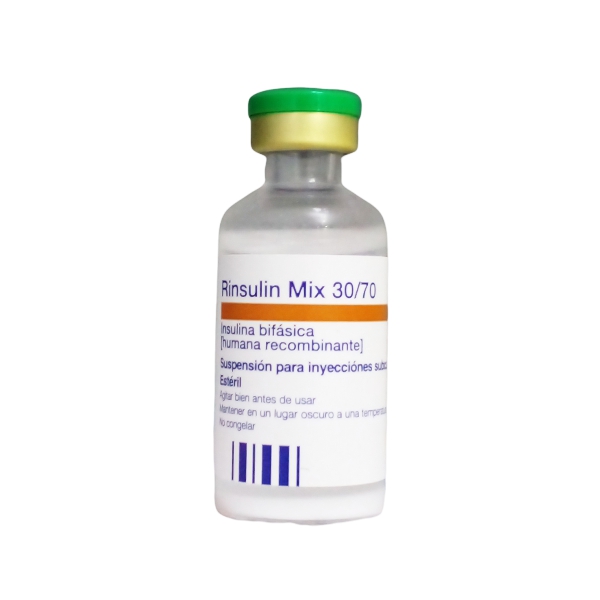 Rinsulin Mix 30/70 contiene como principio activo insulina humana, que se utiliza para tratar la diabetes. Tiene diabetes si su páncreas no produce suficiente insulina para controlar su nivel de glucosa en la sangre (azúcar en sangre). Humulina 30:70 se utiliza para el control de la glucosa a largo plazo. Se trata de una suspensión premezclada de insulina rápida y de larga duración. Su acción es prolongada por la inclusión de sulfato de protamina en la suspensión.Su médico le puede decir que utilice Humulina 30:70 junto con una insulina de acción más lenta. Cada insulina contiene su propio prospecto que le informará sobre ello. No cambie su insulina a no ser que su médico se lo indique. Tenga cuidado si cambia de insulina. Cada tipo de insulina tiene un color y símbolo diferentes en el envase y en el vial para que pueda diferenciarlas fácilmente