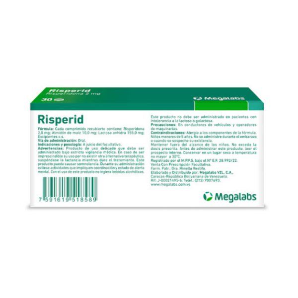 Risperid Risperidona 2 mg x 30 Comprimidos – Megalabs