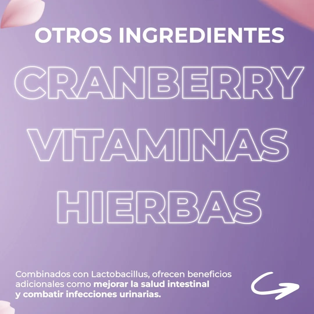 Probióticos en formato de gomitas diseñados especialmente para mujeres. Contiene 5 mil millones de UFC con lactobacillus acidophilus, extracto de arándano rojo y vitaminas como C, D, E y B6 para apoyar la salud digestiva, inmune y urinaria. 60 unidades.