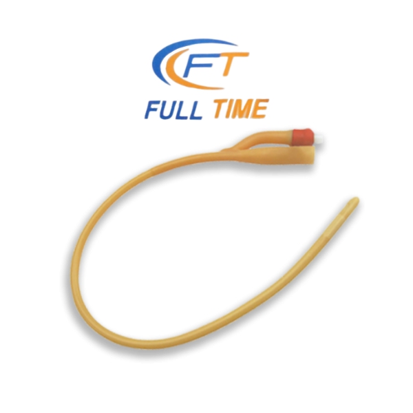 Sonda Foley de látex de dos vías de calibre 16, utilizada para el drenaje urinario en pacientes.