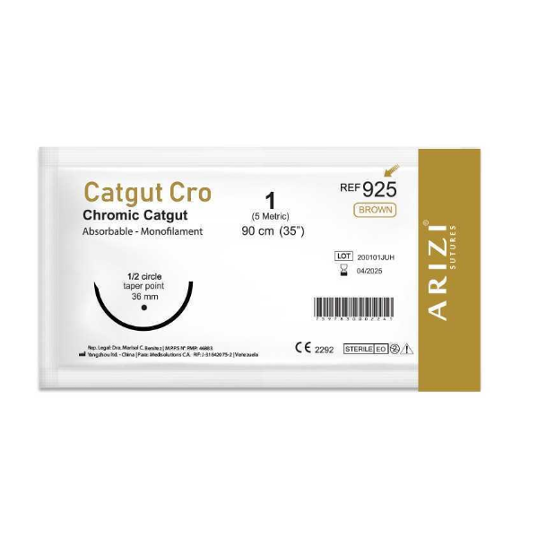 Sutura Catgut Cromico 1 Aguja Curva/No Cortante/Absorbible Arizi R-925