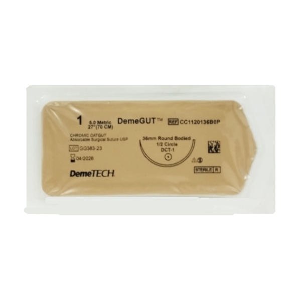 Sutura Cromico 1 Aguja Curva No Cortante Absorbible 36Mm Demetech