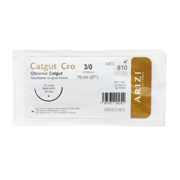 Sutura Cromico 3-0 Aguja Curva 36Mm/70Cm No Cortante/Absorbible Arizi