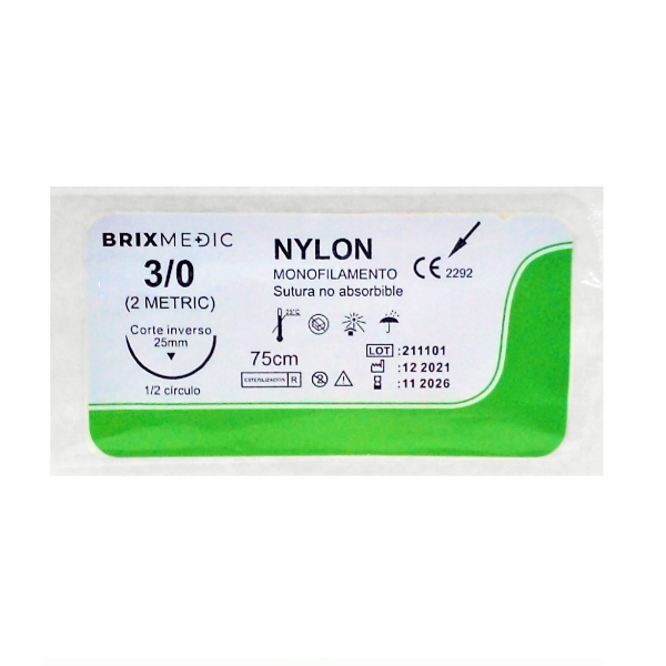Sutura Nylon 3-0 24Mm-45Cm Aguja Curva/Cortante/No Absorbible Brixmedic