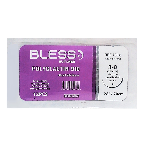 Sutura Vicryl 3-0 Aguja Curva 26Mm No Cortante/Absorbible Bless