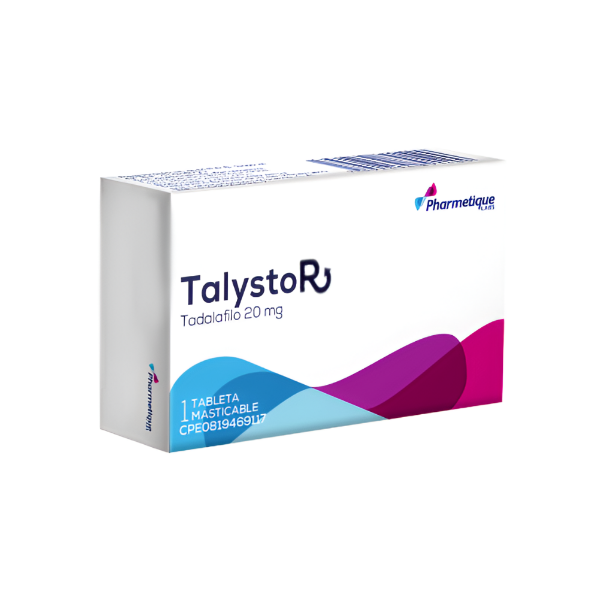 Talystor de Pharmetique es un tratamiento con Tadalafilo de 20 mg, diseñado para mejorar la función eréctil en hombres. Esta presentación de 1 tableta masticable facilita la administración y rápida absorción, ayudando a disfrutar de una experiencia cómoda y efectiva para aquellos que buscan mejorar su vida íntima.