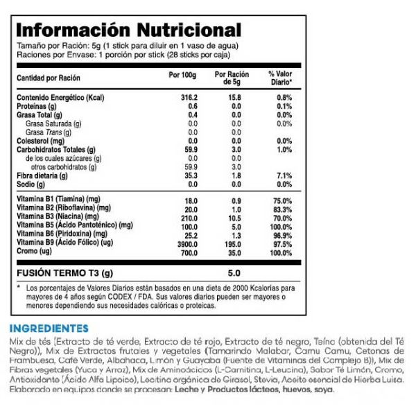 Thermo T3 (Té/Alimento En Polvo) Quemador De Grasa/Elimina Ansiedad Sachet 5Gr Fuxion