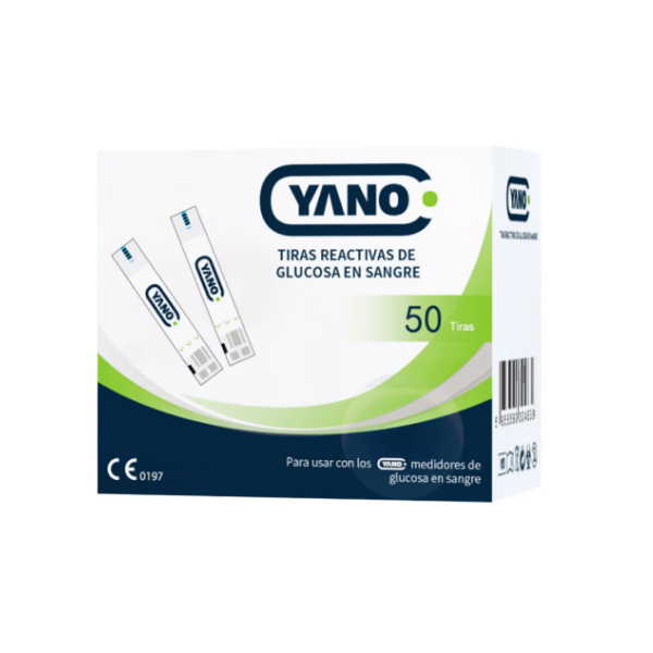Las tiras reactivas de glucosa YANO son pequeños trozos de plástico que disponen en un espacio los elementos reactivos necesarios para que, una vez entre en contacto con la sangre, reaccionen de forma que podamos determinar químicamente la cantidad de glucosa en sangre.