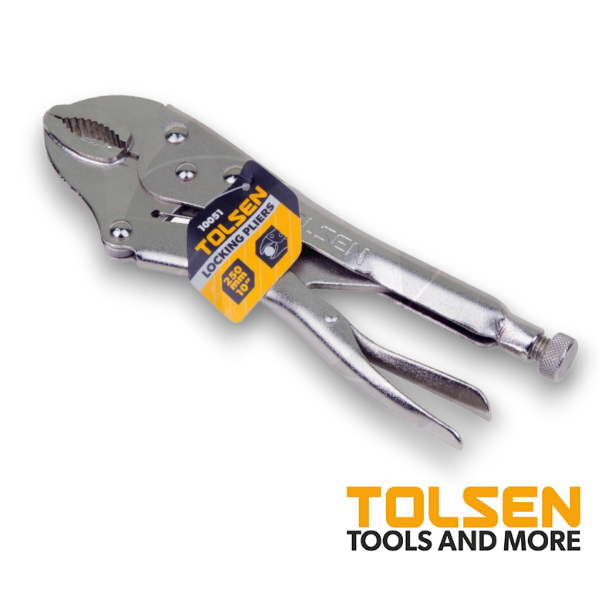 Alicate de presión Tolsen de 250 mm (10 pulgadas), modelo 10051. Este alicate es una herramienta versátil y resistente, ideal para sujetar, moldear y cortar diversos materiales en proyectos de bricolaje y reparación. Su diseño ergonómico y robusto permite un manejo seguro y eficiente, facilitando tareas de precisión.