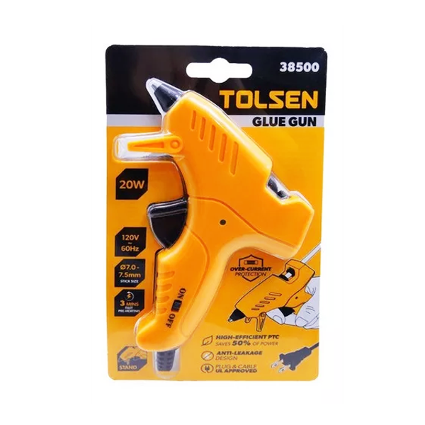 Pistola de silicona de 20W con diseño ergonómico, ideal para trabajos de manualidades, reparaciones y bricolaje. Compatible con barras de silicona estándar, ofrece una fusión rápida y una aplicación precisa gracias a su gatillo de control.